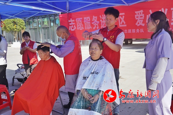 活动现场举办的“孝义善举”主题书画作品展,内容丰富、书体多样,吸引了许多群众前来观看。最受老人欢迎的爱心义剪活动前,身穿红马甲的志愿者耐心热情地询问着老人的需求,为他们提供免费理发服务,看见镜中焕然一新的发型,老人们脸上洋溢着满意的笑容。