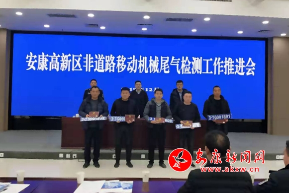 会议就《非道路移动机械知识》进行了宣讲培训,宣读印发了《安康高新区生态环境局关于开展非道路移动机械尾气检测的通知》文件。现场为企业、建筑工地内非道路移动机械使用单位个人代表颁发了号牌和登记证书。