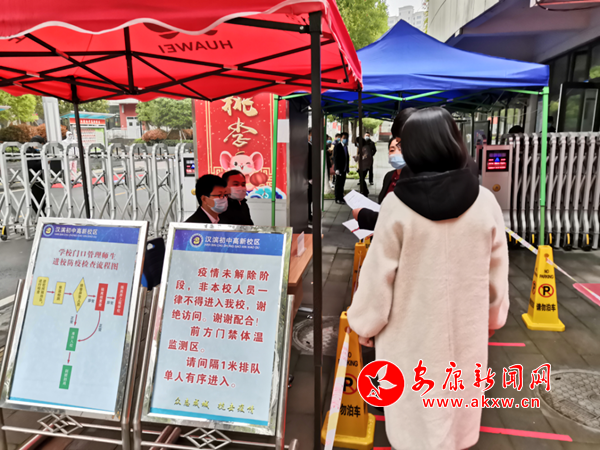 学校门口设置检测点,测温仪、登记表、消毒液等时刻准备就位,由学校老师负责测温检查。学生错时错峰入校,每人须佩戴口罩,入校前须通过体温监测、消毒、登记,确认无异常后方可入校,住宿生携带的行李物品严格进行消毒;入校后实行学生分流,保持间距1米,按照各班指定通道有序进入教室。同时我们设立健康观察室,专门针对检查异常情况。检测出发热学生,应急处置工作立即启动,由相关老师带领转至健康观察室,第一时间上报学校疫情防控领导小组,同时拨打120。