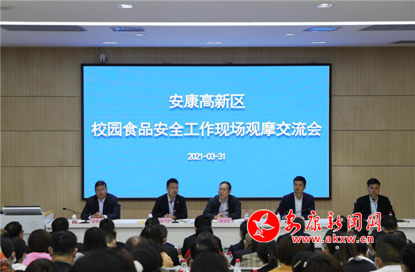 会上,安康中学高新校区、安康高新幼儿园作为中小学校和幼儿园代表分别就学校食堂“4D”、“6S”管理工作作了经验交流发言。高新区教体文旅局就学校食品安全工作进行了现场点评。食药监高新分局通报了高新区春季校园食品安全工作检查情况,就2021年校园食品安全工作进行了安排部署。