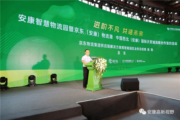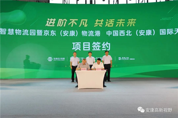 活动中,安康智慧物流园暨京东(安康)物流港与中国西北(安康)国际天贸城签订战略合作协议。