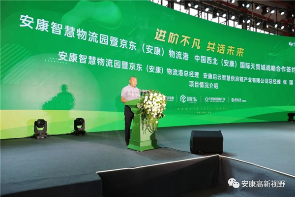 安康智慧物流园暨京东(安康)物流港总经理、启云智慧供应链产业有限公司总经理张 国介绍合作项目情况。他表示,项目全面运营后,将有效提高安康物流业智慧化、信息化、科技化水平,补齐安康物流园区设施短板,推进物流产业和区域经济实现更有效率、更高质量、更可持续的快速发展。