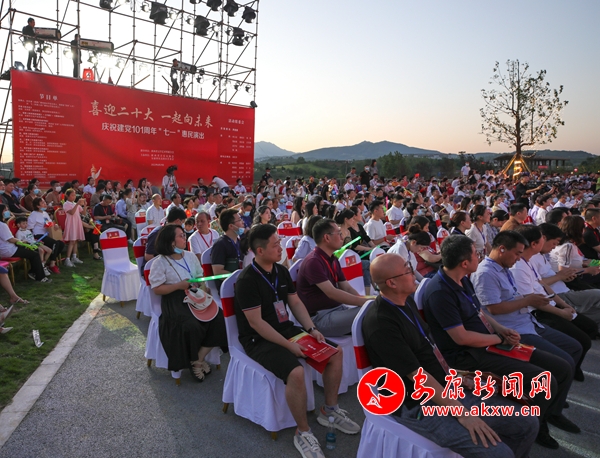 本网讯(记者 肖兵)6月29日,安康高新区“喜迎二十大 一起向未来”庆祝建党101周年“七一”惠民演出在桃花源桃心湖举行。