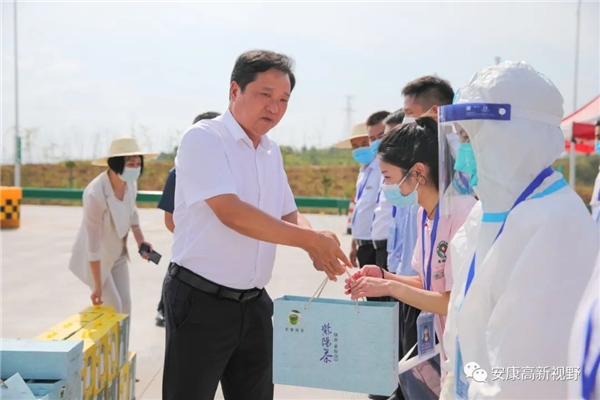 7月14日,市委常委、安康高新区党工委书记罗武侠带领相关部门负责人看望慰问防疫、水电、环卫等一线工作人员,为他们送去防暑降温物品,向他们为城市发展和保障民生作出的辛勤贡献给予高度肯定、表示衷心感谢。