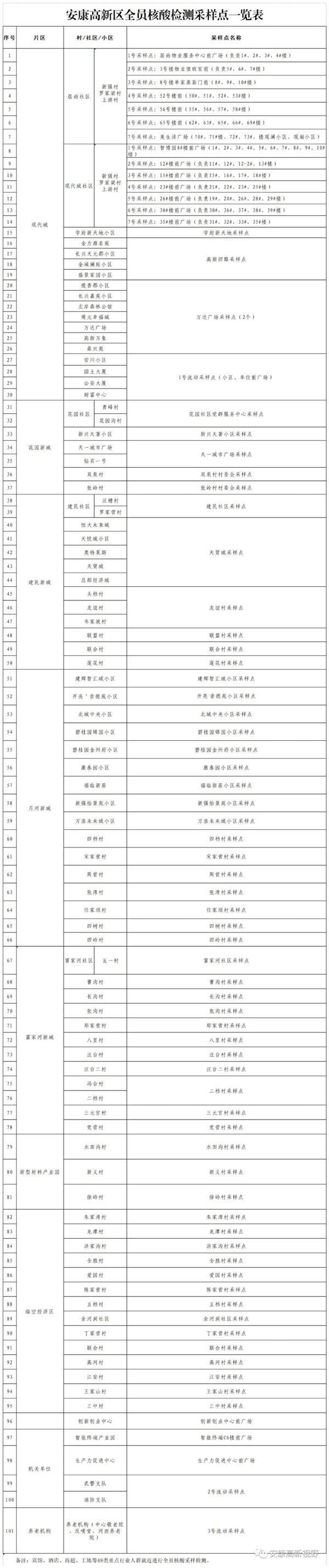 附件:安康高新区全员核酸检测采样点一览表