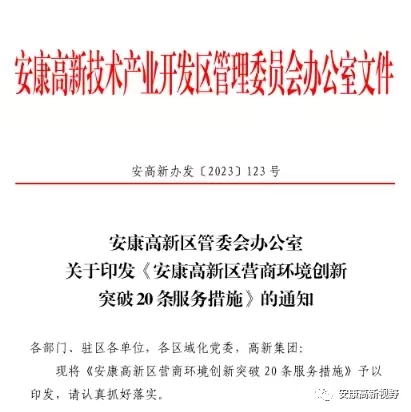 为深入贯彻落实营商环境突破年决策部署,推动高新区营商环境建设取得量的突破和质的提升,着力营造“全国一流、全省最优”营商环境,特制定20条服务措施: