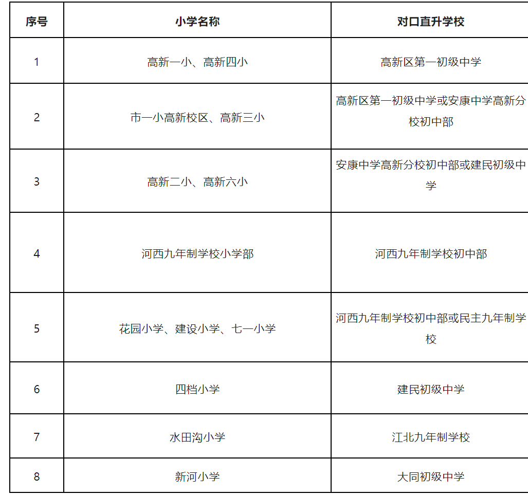 四、安康高新区2023年小升初对口直升一览表