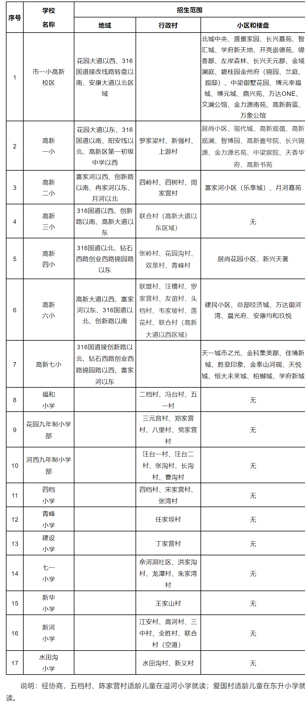 三、安康高新区2023年小学服务范围一览表
