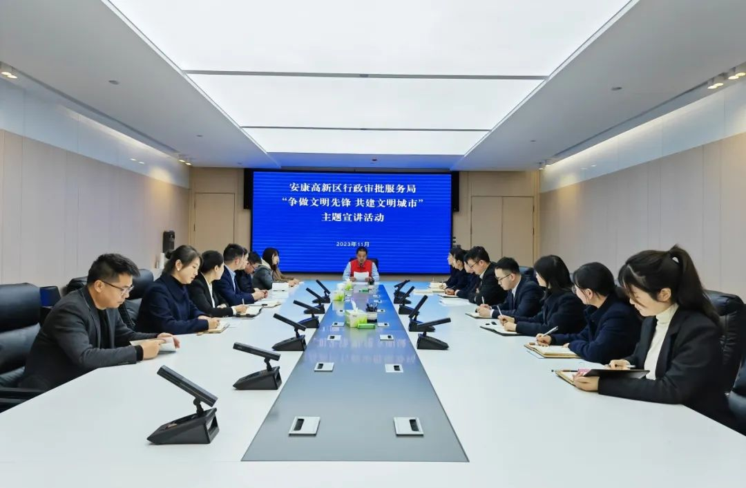 11月17日下午,安康高新区行政审批服务局举行“我是崇德向上安康人 我为文明安康做代言”宣讲活动,活动围绕“争做文明有礼人 共创全国文明城”主题开展了敬业奉献类代言人宣讲和展示。