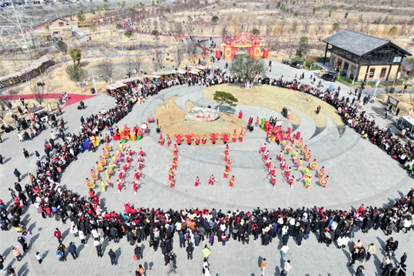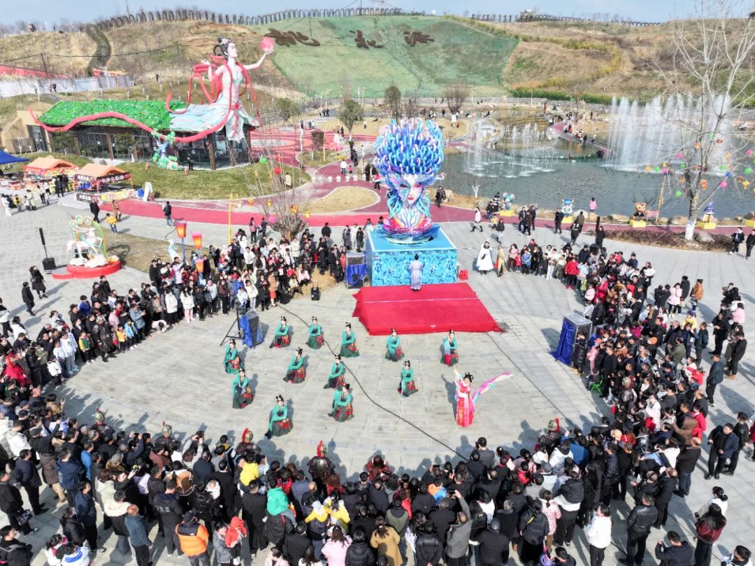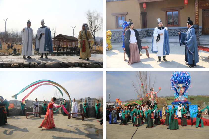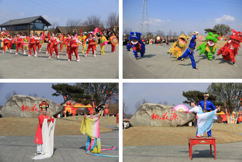 丰收大秧歌、龙腾腰鼓队、喜庆莲响、彩船、花轿大联欢、社火、小场子戏等精彩的传统民俗节目在桃花源相继上演。新颖的编排、精彩的表演,令现场游客大饱眼福,叫好声、喝彩声此起彼伏。当天近25000余名市民游客前往桃花源观看表演、打卡游园,处处洋溢着“欢欢喜喜过大年”的节日气氛。