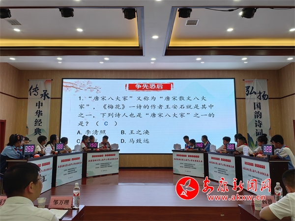 活动以“弘扬国韵诗词,传承孝义文化”为主题,分小学组和中学组进行,通过“有问必答”“争先恐后”“飞花有令”“一槌定音”等环节累计积分,计算团体和个人成绩,主要以考查学生对古诗文的理解和感悟、积累和运用、诵记和鉴赏能力为目的,呈现方式灵活多样,全面检测学生的古诗文素养及应变能力。比赛现场,热烈精彩、亮点纷呈。选手们才思飞扬、机敏应答,展示出扎实的诗词功底,尤其是“飞花令”环节,选手在赛场上妙句频出、对答如流,赢得现场阵阵掌声。特邀嘉宾们的精准点评、“欢乐互动”环节和穿插的文艺节目表演也让现场气氛更加活跃,为比赛增色不少。