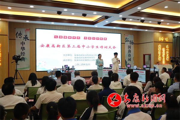 本网讯(通讯员 王宗涛)5月30日,安康高新区“弘扬国韵诗词 传承孝义文化”第三届中小学生诗词大会决赛在高新区第四小学举行。全区各中小学校长、学生代表110余人到场观摩,活动通过微信视频号同步直播,2万余名观众在线观看比赛,一起重温那些历久弥新的经典,领略中国古诗词的魅力。