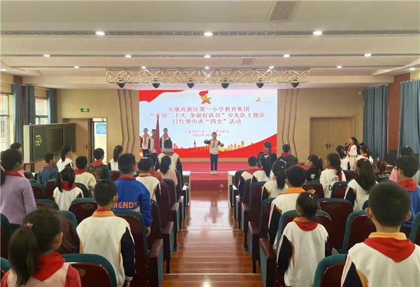 为贯彻习近平总书记在党史学习教育动员大会上的重要讲话精神,推动广大少年儿童学好党史、新中国史、改革开放史、社会主义发展史,传承红色基因,坚定理想信念,按照中、省、市关于开展党史学习教育的文件精神要求,2022年10月13日,安康高新区第一小学教育集团举行了“喜迎二十大 争做好队员”少先队建队日活动——红领巾讲“四史”演讲比赛。