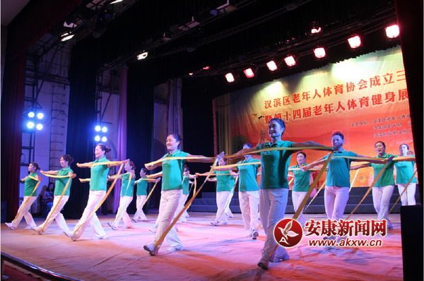 老人们用体育健身展示庆祝汉滨区老体协成立30周年