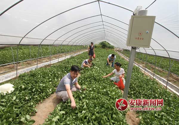 安康新闻网讯 (记者 王拥)7月27日,游客正在汉滨区大河镇尚硒现代农业园区采摘降压菜。园区负责人王彩春拿出手机点击按钮,手机上弹出园区一角,每个大棚实时的温度、湿度、光照、风速、风向、雨量等信息也一目了然。他说,这是园区安装的智能化系统,将物联网技术运用到传统农业中,通过移动平台,对农业生产进行控制,使传统农业更具智慧。据悉,该园区是我市首家投入运营“智慧农业”的园区。DBt安康新闻网