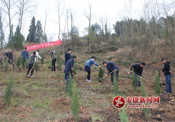 安康新闻网讯(通讯员 崔培)3月17日早上,县河镇全体干部职工一起来到红升社区二组后坡,大家挥起锄头,每人栽下了侧柏树,以前冷冷清清的山坡上今天是一片繁忙景象。
