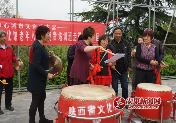汉滨区文化馆老年人免费锣鼓培训班走进张岭社区