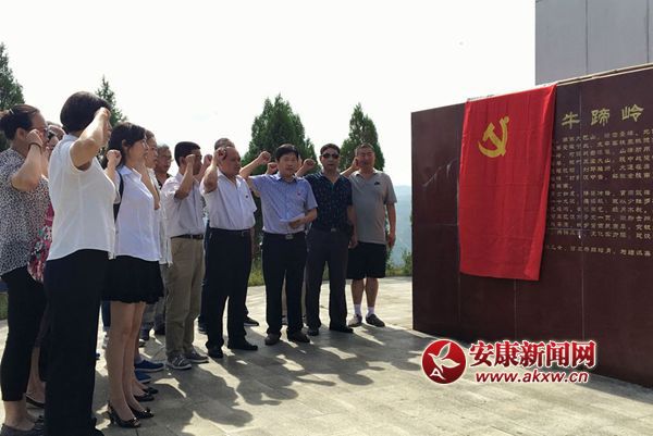 安康新闻网讯(通讯员 刘娇)“我志愿加入中国共产党,拥护党的纲领,遵守党的章程,履行党员义务……”6月22日,牛蹄岭战斗纪念碑前,50名党员面向鲜红的党旗,举起右手庄严地宣誓。这是江北办张沟桥社区为庆祝建党96周年,推进“两学一做”学习教育常态化,特别开展的“缅怀革命先烈,重温入党誓词”主题教育活动。