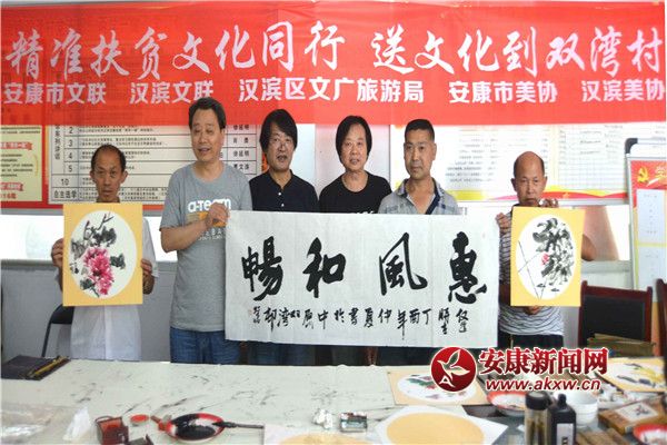 安康新闻网讯(记者 牟庆红 )由安康市文联 汉滨文联 安康市美协 汉滨美协 汉滨区文广旅游局组织的“精准扶贫文化同行 送文化到双湾村”活动6月25日在汉滨区中原镇双湾村举行。CD8安康新闻网