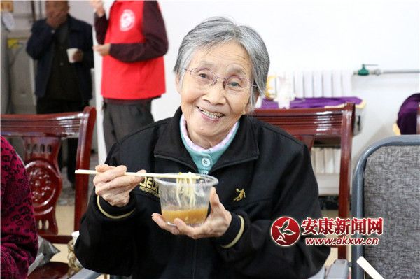 在后厨,志愿者们正紧张地为老人们准备长寿面。金灿灿的爱心煎蛋、热锅里来回翻滚的面条、散着股股清香的酱料,让人垂涎三尺。“呲溜、呲溜...”吃上这碗热气腾腾的长寿面,让老人们心里热热乎乎。
