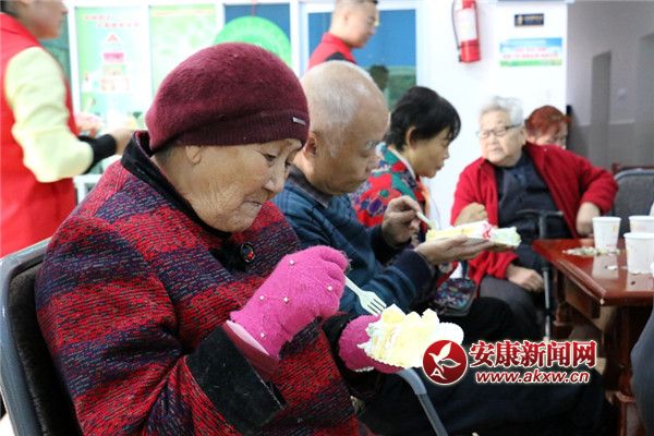 “祝您生日快乐,祝您生日快乐……”伴随着熟悉的旋律,志愿者们将插满蜡烛的大蛋糕缓缓地推到两位寿星面前,老人既惊喜又感动,一时间,老人心底的暖流化成了眼角的泪光。唱完生日歌、许过了愿望、吹灭了蜡烛,老人们一块儿吃着甜滋滋的蛋糕,都乐得合不拢嘴。