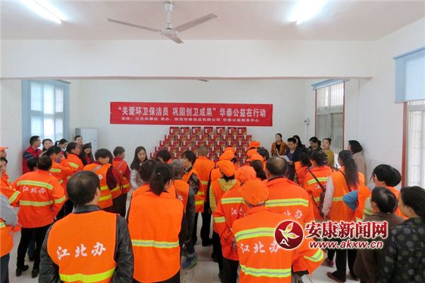 11月1日上午,汉滨区江北办联合华泰公益组织开展“关爱环卫保洁员,巩固创卫成果”慰问活动。江北办领导与公益负责人一同为120余名环卫工人送上慰问礼包和祝福问候。
