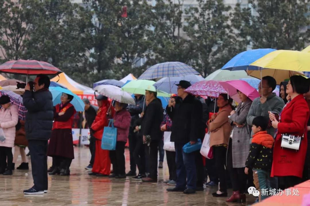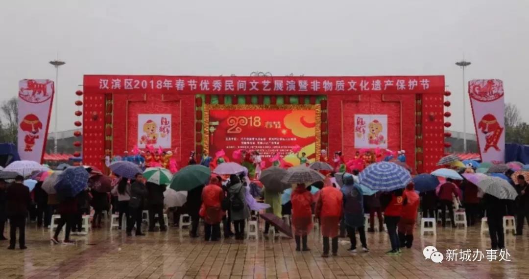 安康新闻网讯(通讯员 唐志丹 王艳)炮竹声声辞岁旧,和风送暖迎新春。2月27日上午十点,汉滨区2018年春节优秀文艺展演新城专场在安康金州广场举行。天空虽然飘着细细的春雨,但是依然吸引着数千名市民冒着细雨前来观看。