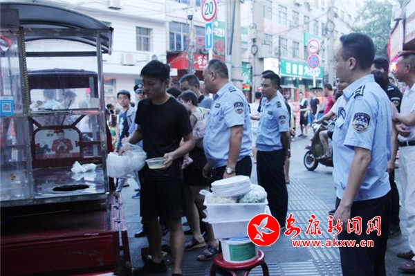 晚上7点,执法队员沿兴安东路、静宁路到金州广场沿线进行逐一巡查,发现多辆流动餐车停在街边叫卖,摊位前有市民购买,有的群众正在露天用餐。执法人员首先叫停了各摊点的售卖行为,并对流动摊贩进行宣传教育,随后下发整改通知书,现场共取缔流动摊点8个,并按照《陕西省食品小作坊小餐饮及摊贩管理条例》第四十五条规定,对违章占道经营的食品商贩处以没收经营工具的处罚。