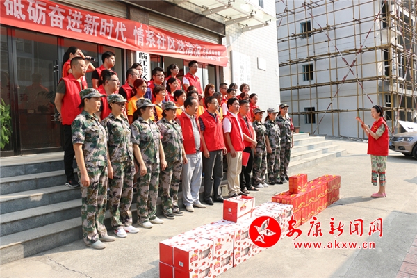8月15日上午,江北街道办临江社区迎来了市级包联单位——市审计局,副局长郭峰带领着工作人员、志愿者队伍与临江社区一道开展“砥砺奋进新时代,情系社区送清凉”联建活动,江北街道办人大工委主任汪道琦也来到活动现场,和慰问团一起询问了解清洁工人、巡逻队员的工作状况、高温防暑措施,送上了防暑降温物品,并为他们鼓舞打气,让奋斗在一线的清洁工人、巡逻队员感到一丝丝清凉。
