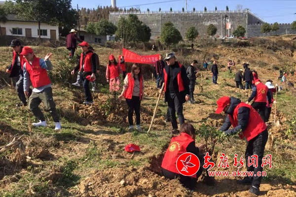 本网讯 (通讯员 余军) 2019年3月12日上午,汉滨区群工部相关领导干部和县河镇的志愿者们一起在县河镇牛岭开展义务植树活动。