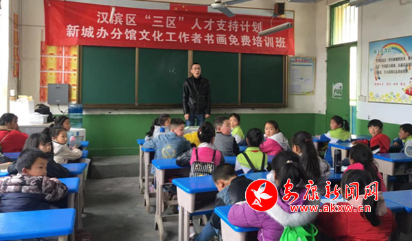 本网讯 (通讯员 王艳 王洁)为大力弘扬中国传统文化,陶冶人文情怀,满足新城街道办人民群众日益高涨的艺术需求,促进辖区内各类艺术志愿者的学术交流,汉滨区文化馆“三区”人才支持计划为该办选派两名文化工作者。3月15日,两位老师来到枣园九年制学校开展书画、舞蹈免费培训班,为学校社团的书法爱好者介绍书法起源及发展史,为舞蹈爱好者介绍第一套戏曲广播体操。老师们遵循从简到繁,由浅到深,循序渐近的原则,为孩子们在学习的过程中提供提升艺术感悟力的有效路径。zAZ安康新闻网
