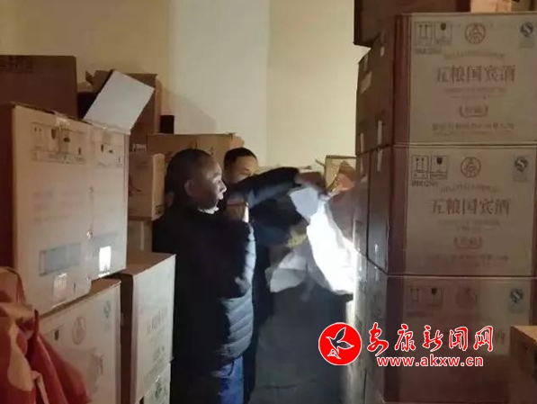 2019年1月26日,该分局环食药侦查大队根据线索,对城区巴山路某烟酒商行进行突击检查,现场查获一批涉嫌假冒名酒,并在该商行另一仓库内发现储存的大量茅台、五粮液、国窖、西凤等名贵假酒。随后,民警又通过犯罪嫌疑人的手机,顺藤摸瓜发现这家烟酒商行在城东位置的另一个库房,内藏大量的各类名贵假酒,货值近40万元。