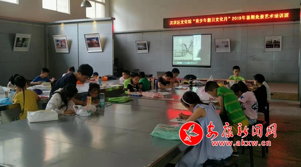 本网讯 (通讯员 惠星)俗话说“天不怕地不怕,就怕熊孩子放暑假!”,转眼之间,一年一度学生暑假又开始了,在近两个月的假日里,如何让孩子能够度过一个充实的假期生活让不少家长犯了难。而与此同时,汉滨区文化馆与各镇、办分馆已精心准备,推出了“文化小康行动”系列品牌文化惠民活动——“青少年假日文化月”艺术免费培训,组织专业文化艺术工作者开展绘画、书法、舞蹈、泥塑等丰富多彩的免费艺术普及课程,让青少年学生在假日里享受到优质的公共文化服务。
