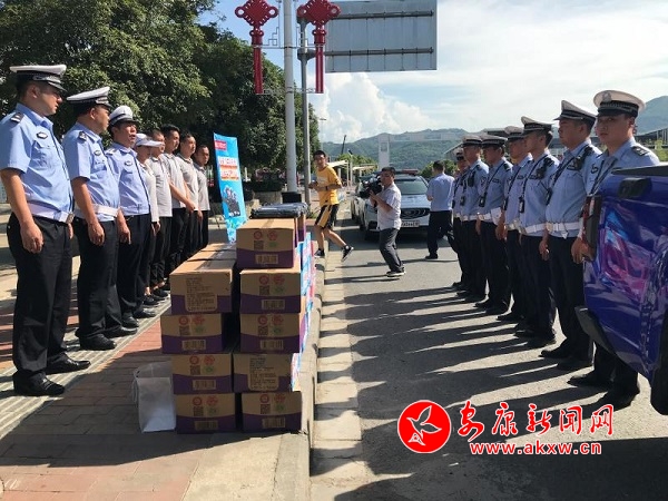 永成汽贸公司负责人表达了对高温天气下交警始终如一坚守岗位、辛苦工作的崇高敬意,“连日来持续38度的高温,我们切身感受到了炎炎酷暑的威力,交警们头顶烈日,不怕辛苦,战斗在第一线,他们以高度的责任感确保了广大市民的安全出行。我们公司理所应当承担社会责任,表达企业爱心,算是尽自己的微薄之力,表达自己的敬意和感激之情。”