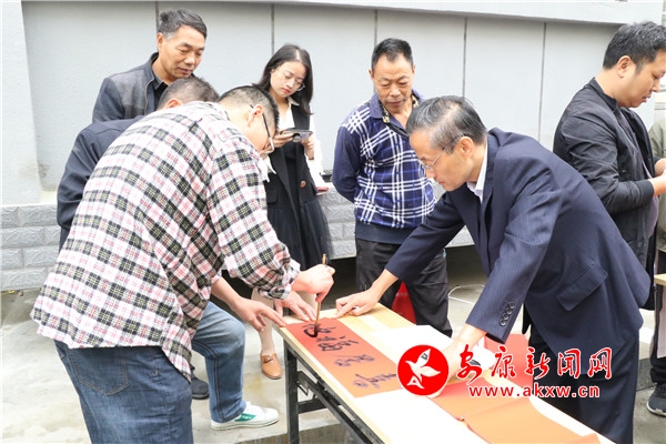 乔迁新居贴对联,是安康的习俗。“红日高照新居户,喜花常开幸福家”汉滨区文联邀请5名我市知名书法家现场为搬迁的贫困户书写对联。该镇还为乔迁新居的易地搬迁对象送上了精心准备的礼品。