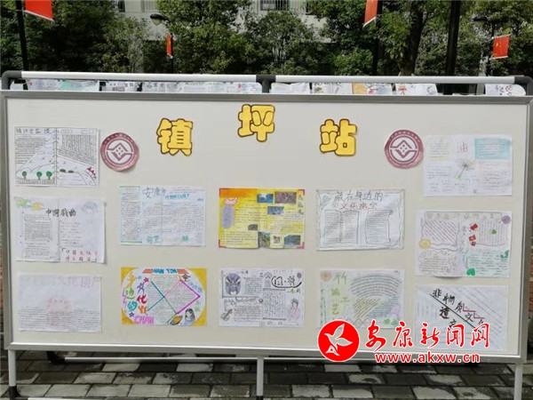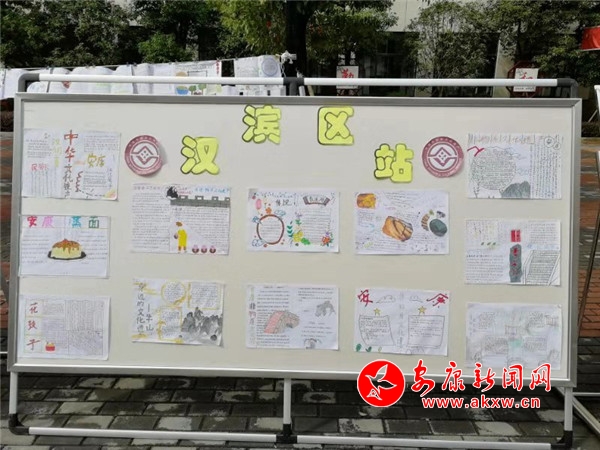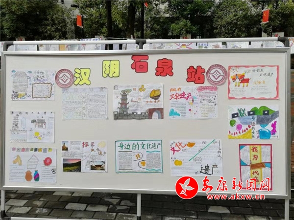 此次展板按地域文化特色,分为汉滨区站、旬阳平利站、汉阴石泉站、镇坪站、紫岚宁站五大板块。每一张手抄报,从设计到排版,从书写到绘画,都各具特色:这里面有对壮美河山的赞美,有对雄伟建筑的钦佩,有对安康区县奇观异景、民俗文化的自豪……图文并茂的手抄报吸引了全校师生驻足观赏,啧啧称赞,更有学生拿着纸笔认真地做记录。