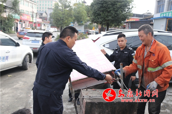 整治行动中,整治组采取宣传教育与现场取缔结合的方式,挨家挨户宣传《中华人民共和国大气污染防治法》、《安康市汉滨区人民政府关于划定高污染燃料禁燃区的通告》等相关条例,督促沿街商铺业主限期自行整改到位,执法队员还自备灭火器、剪刀、抹布、铲刀等工具,对屡教不改使用蜂窝煤炉的顽固商铺及316国道关庙镇辖区公路沿线各类乱贴乱画、乱摆乱放的小广告逐一进行彻底清理。当天共取缔蜂窝煤炉8个,清理各类张贴小广告40余处,拆除乱扯乱挂横幅15条,没收乱摆乱放广告牌30余个。