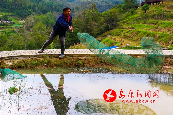 2019年4月,中国建设银行驻安康扶贫工作组汉滨区县河镇财梁社区建设以虾稻混养和名宿旅游开发为主的综合型现代农业园区,目前已建设虾稻养殖基地80亩,带动周边贫困户12户40人。据园区负责人陈蛟介绍,明年5月小龙虾可上市,预计实现收入80万元。 张昊 摄