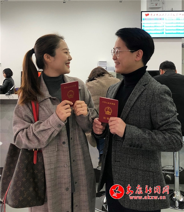 据统计,截至今日17时,汉滨区婚姻登记服务中心共有84对新人登记领证。