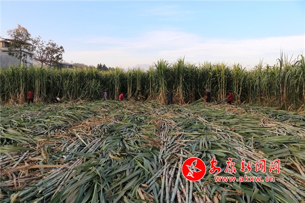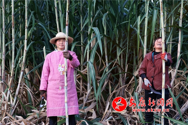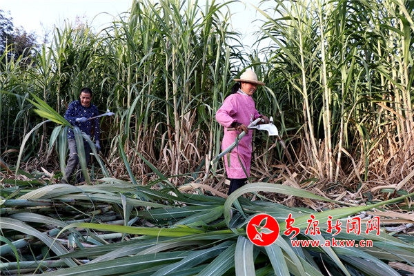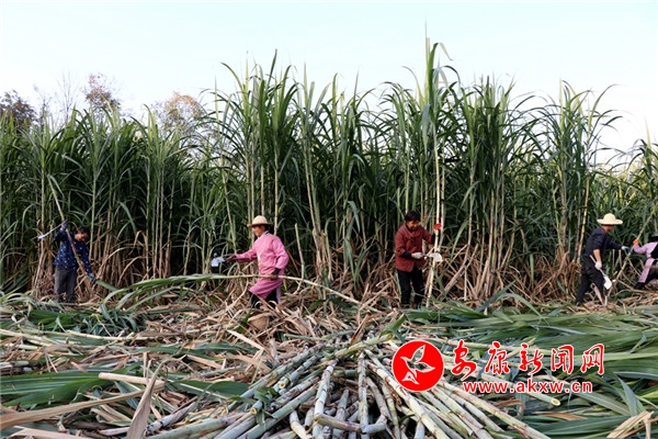“今年的甘蔗大丰收啊,长得好的很。”正在采收甘蔗的村民陈开云说,“自从村上发展了甘蔗种植产业,我就在甘蔗基地务工,种甘蔗,收甘蔗,一天能挣上80元。”
