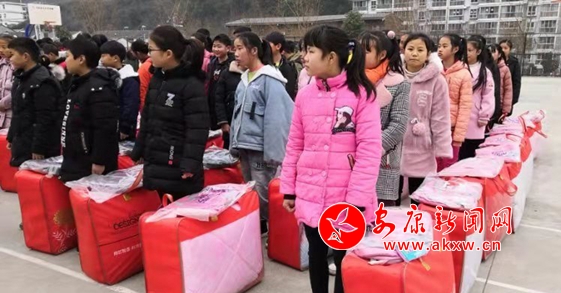 1月3日,陕西安康红河建设工程有限公司、安康市宏泰建筑工程有限公司向汉滨区茨沟镇初级中学贫困学生捐赠棉被209床,书包209个,总价值40000元。(通讯员 李林霞/文图)9XT安康新闻网