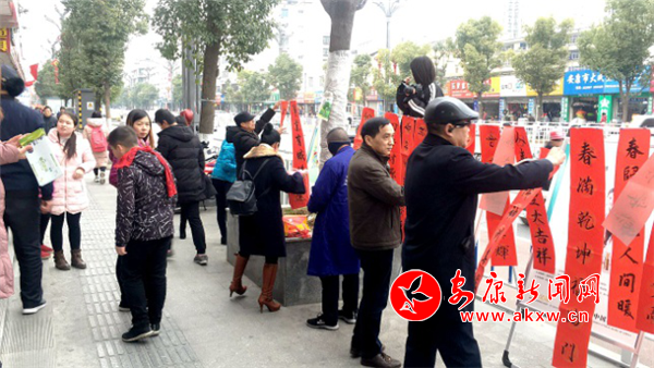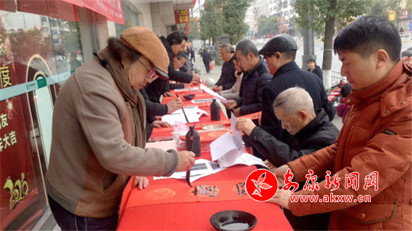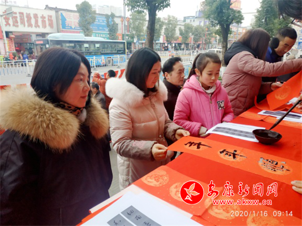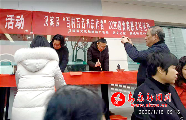 本网讯(通讯员 王艳 刘长青 赵小顺)“迎新春、贴春联”是中华民族的传统文化,突显了年味民味,一副副精美的春联,蕴含着辞旧迎新的美好祝福。2020年1月16日,汉滨区文化旅游广电局、汉滨区文化馆、新城街道办分馆在巴山中路举办“百村百名书法作者”义写和2020年“文化小康行动——万副春联进农家”活动。