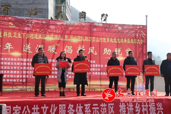 本网讯(通讯员 尹允靖)数九寒冬腊月天,高山村里闹新年。1月17日,农历腊月二十三日,汉滨区早阳镇高山村里热闹非凡,群众干部欢聚一堂,正举办着“迎新年、送温暖、倡新风、助脱贫”送文化、科技、卫生下乡村进社区文艺演出暨爱心团队助力高山村脱贫攻坚先进典型表彰大会。