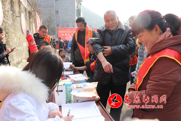 活动还未正式开始,义写春联摊位上就已围满了人群,来自汉滨区文化馆的老师们挥毫泼墨,为高山村的乡亲们传递新年的祝福,现场的群众接过一幅幅墨迹未干的春联,满脸都是藏不住的喜悦,“我家都几年没贴对联了,今年这手写的春联送上门,我也来要一副贴哈子。”现场的群众纷纷表示,这样的春联显的更有年味。在送卫生的摊位前也排起了长队,来自早阳镇共进卫生院的医生们为现场的群众做起了简单的体检,量血压,询问生活习惯,结合大家的生活规律,科普一些健康小常识,并给予一定健康指导。镇扫黑办、计育办、文化站等部门也结合自身业务,向现场群众提供相关咨询服务。
