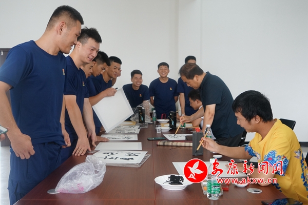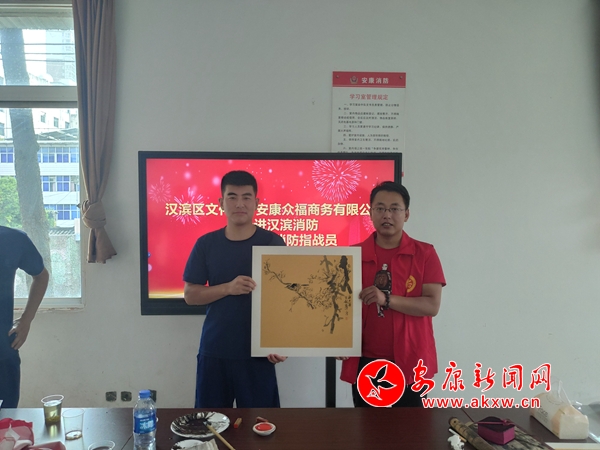 在活动现场,爱心企业为消防指战员们送上了精心准备的解暑慰问品。来自汉滨区文化馆的工作人员与消防指战员们亲切交谈,并就消防救援队伍文化建设及文化服务需求进行了沟通交流,书画工作者根据消防指战员们的需求现场创作、赠送了书画作品,以精心创作的书画作品感谢消防指战员们在处置各类灾害事故、保障人民群众生命财产安全等方面作出的贡献。
