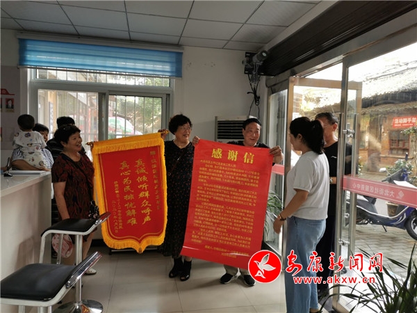 本网讯(通讯员 马一平)8月2日,纱帽石街48号巷道居民代表来到大北街社区,将一面题为“真诚倾听群众呼声,真心为民排忧解难”的锦旗和感谢信送至王宗梅书记手中,感谢老城街道创建办及大北街社区在纱帽石街48号道路改造中做出的努力。