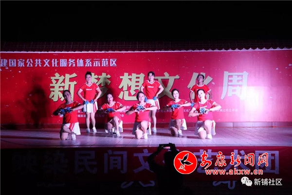 本网讯(通讯员 周登喜)为推进国家公共文化服务体系示范区建设,满足群众精神文化需求。汉滨区新城街道办“新梦想文化周”文艺汇演活动如火如荼进行中,新铺社区映染民间文化艺术团在第三场演出中闪亮登场,现场500多名群众观看了本次演出。