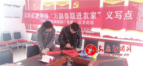 本网讯(通讯员 宫再朋 张艳)1月27日,在紫荆镇各村文化活动室里,来自各村的书法爱好者们挥毫泼墨,为村民们义写春联。一副副飘着墨香,饱含着浓浓年味、美好祝福的春联相继出炉,行书、楷书、隶书等多种字体各显神韵,不一会就铺满了地面。