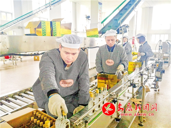 走进陕西泸康酒业(集团)公司成品二车间,只见近千平方米的大厅中,三条生产线平行分布。正在进行小瓶泸康酒灌装的二班,他们三五人一组在生产线旁,或上瓶洗瓶、或灌装检验、或贴标装盒、或包装入库,分工协作,紧张有序。