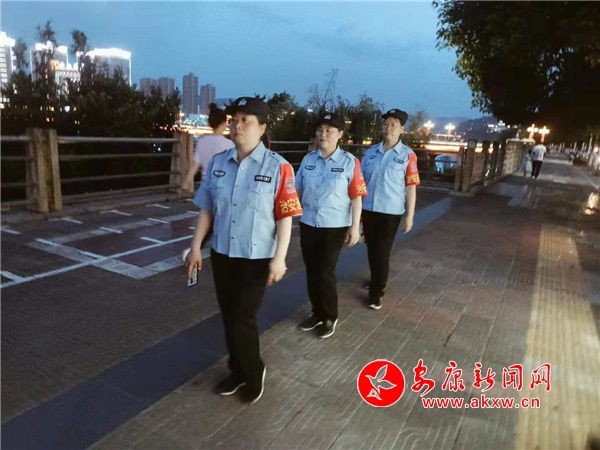 每当夜幕降临,她们不停地在小区、沿街商铺、街头巷尾穿梭着,或是查看居民的车门是否锁好、消防工作是否做好,或是警惕地四处张望,或是提醒群众注意防火、防盗、防诈骗。她们就是江北“红袖章”夜间巡逻队。